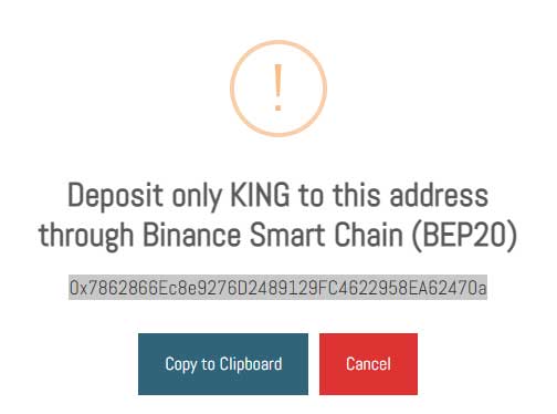 - Desde la wallet propia enviar los KINGs a esa dirección (Importante: chequear en todo momento que las direcciones corresponden, no nos hacemos cargo por envíos erróneos)